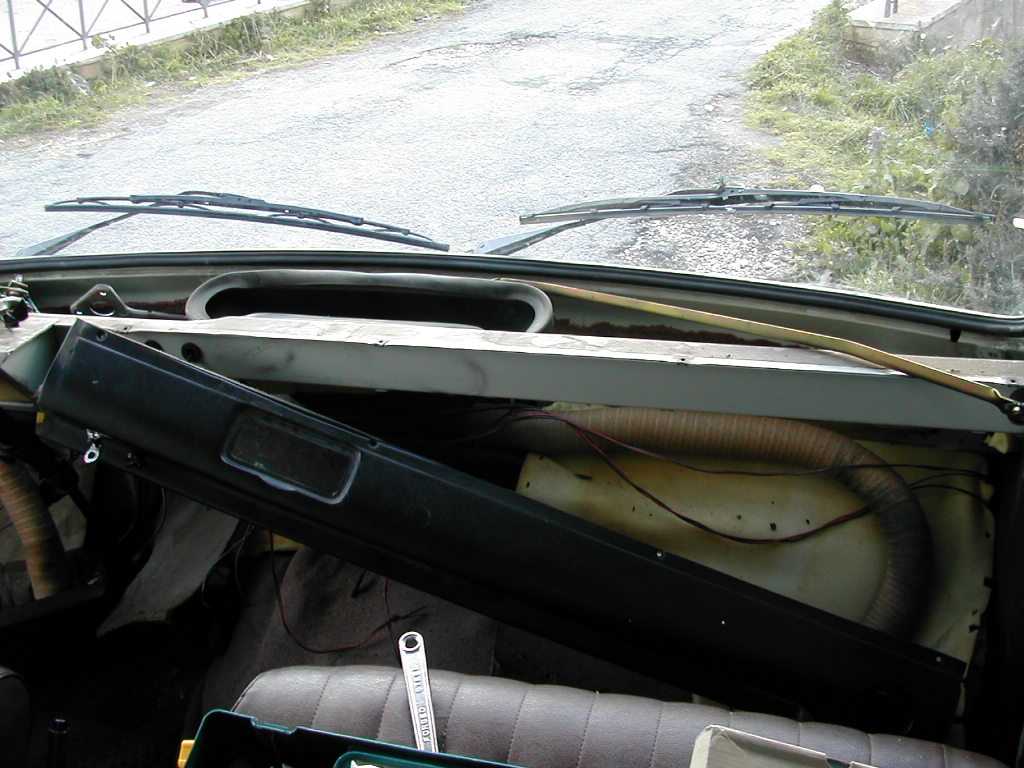 Da non credersi: mi si e' bruciato il MOTORINO DEL TERGICRISTALLO, con grandissima fumata e spavento mio per il fumo in cabina. Per sostituirlo, ho dovuto ... guardate voi stessi: un INFERNO per smontare interamente tutto il cruscotto!!! un INFERNO PAZZESCO, 1 GIORNO DI SUDORE SANGUE E BESTEMMIE! :)