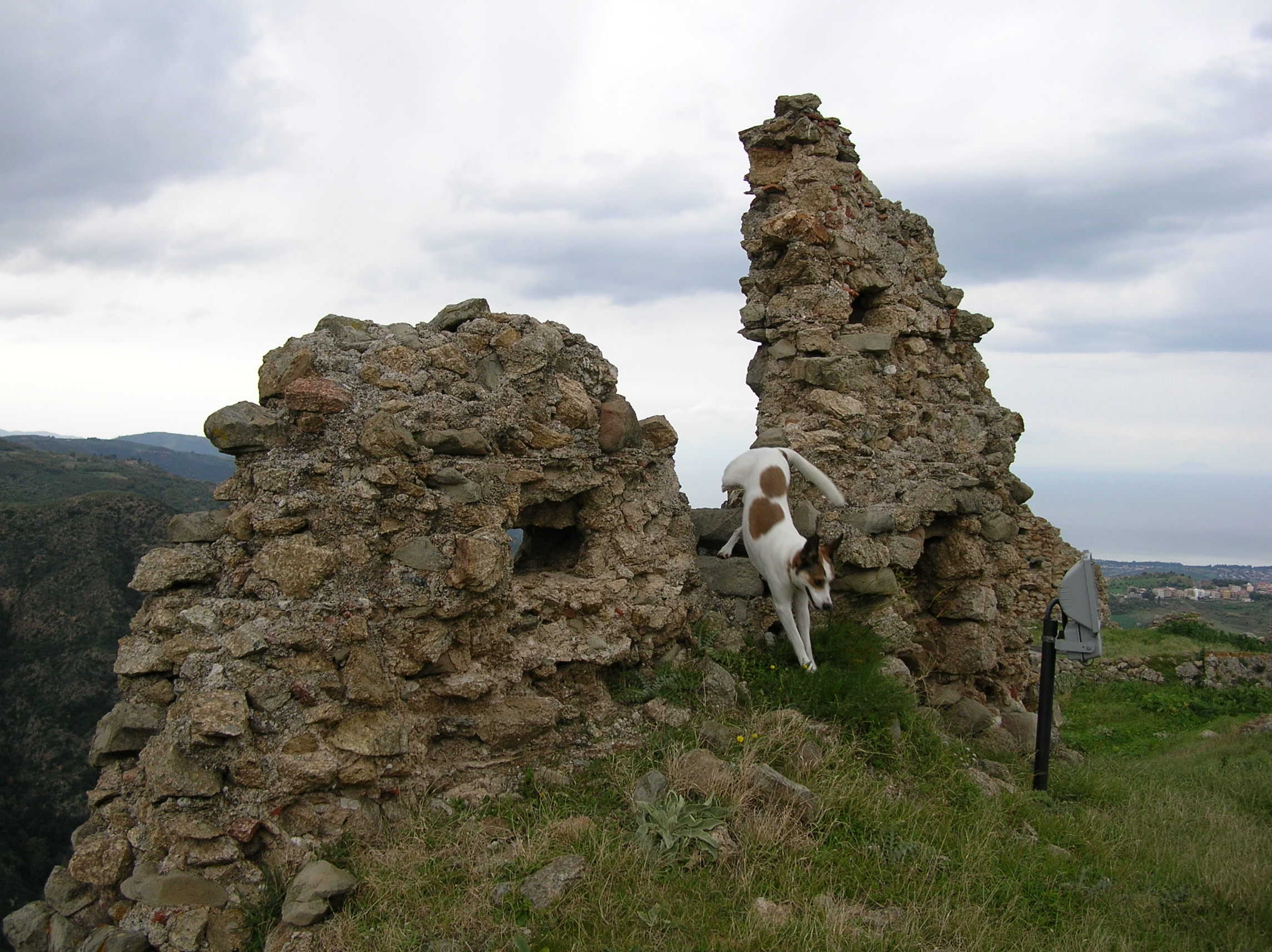 Arriviamo stanchi per la gran salita, infreddoliti per il gelo che avanza e per i venti freddi con nuvoloni distanti, ma lo spettacolo e' stupendo, il castello doveva essere bellissimo un tempo. Ci godiamo il posto, ci riposiamo un po', facciamo foto, guardiamo il panorama e le isole lontane, che ci aspettano (abbiamo anche qualche dubbio se andare sulle isole o no, ma presto decidiamo di andare, anziche' restare a girare sui Nebrodi).
