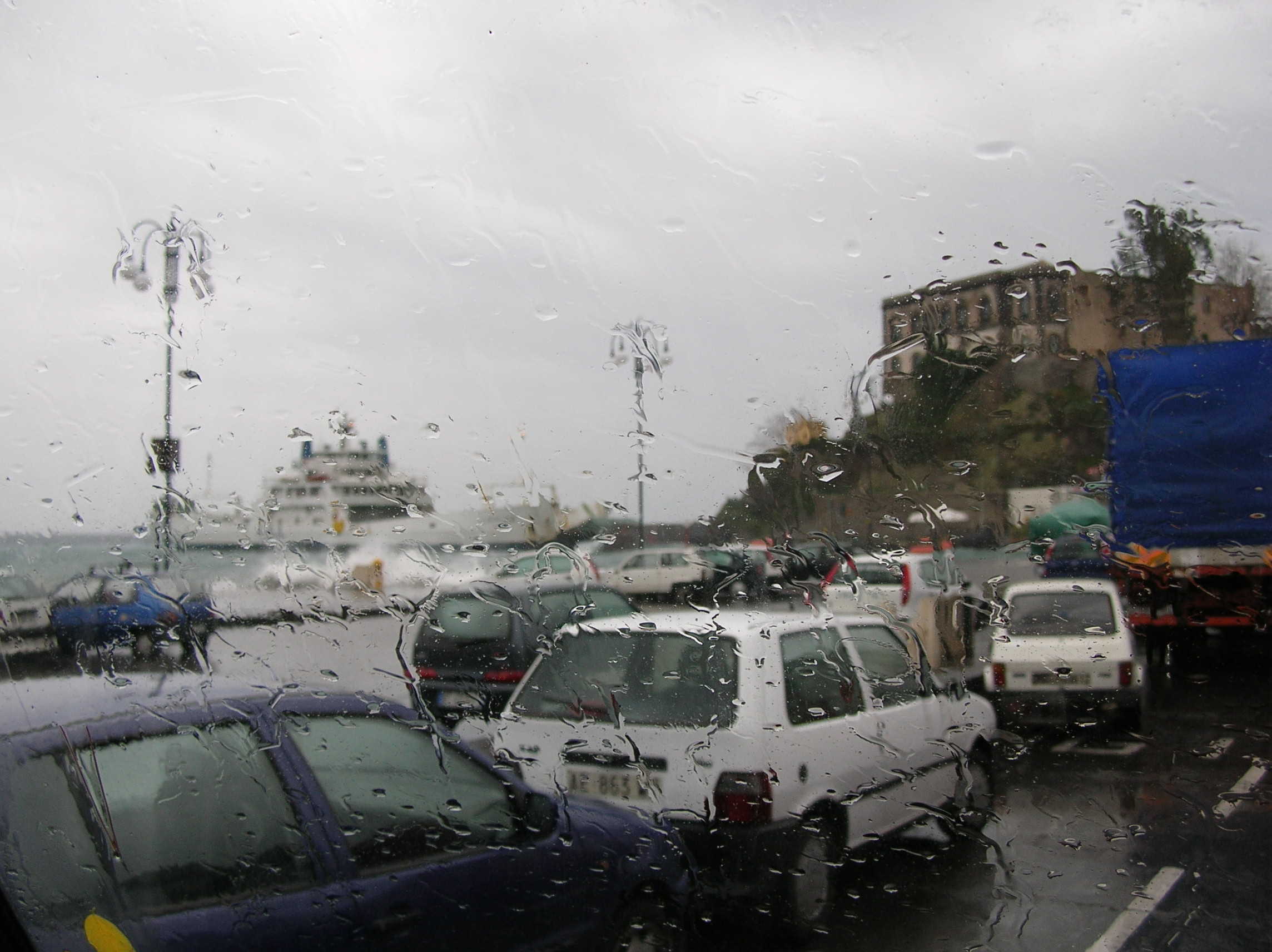 E ci rendiamo conto che non sara' una traversata divertente: il mare si e' ingrossato tantissimo ed il vento (come leggero' dopo dai bollettini meteo) e' forza 8 !! Ma ci assicurano che il nostro traghetto puo' viaggiare anche con mare in burrasca, poiche' ha il fondo piatto ... cosa che, scopriro', ha delle ripercussioni sul... rollio e beccheggio della nave :(